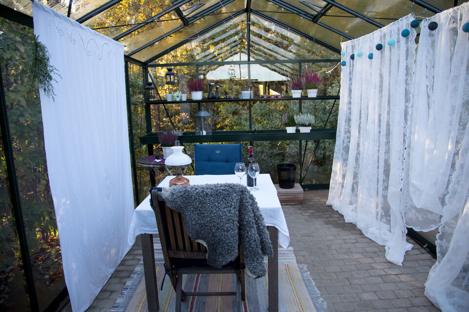 Inte helt rätt för vi isolerar inte för att kunna ha frostfritt hela vintern. Men vi inreder för att kunna nyttja växthuset även under vintermånaderna. Textilierna är blandade. Ett lakan som farmor ... läs mer..