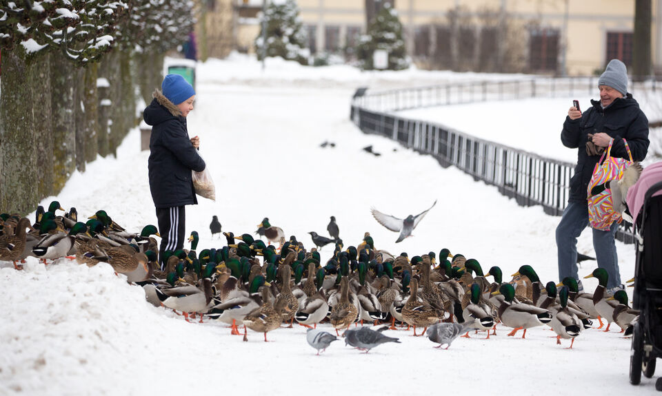 Jag kom lite tidigt till fotofikat vid Fågelsången och tog som vanligt en tur runt Svandammen. En liten kille hade en påse med bröd och hade snabbt samlat en stor mängd hungriga fåglar runt sej.