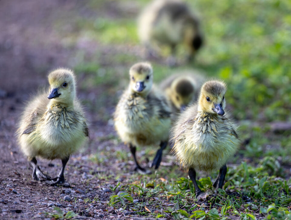 Ibland behövs det inte så mycket. Ett gäng små gässlingar som kommer springande mot fotografen med sådan fart att jag måste backa. Kan man annat än bli glad av ett sådant möte.
