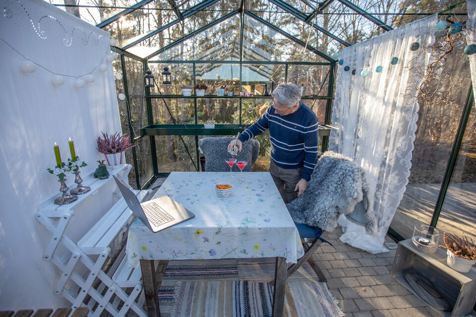En vecka senare än förra året och betydligt kallare, men i helgen hade vi i alla fall växthuspremiär. Sambon serverar en clover club och vi ska precis börja veckans "zoom- cocktail" med London och ... läs mer..