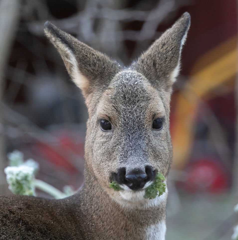 Jag jobbade hemma idag och när jag gick mot köket för att äta lunch fick jag syn på en besökare som tittade in genom fönstret i vardagsrummet. Jag hämtade kameran och hon stod kvar.