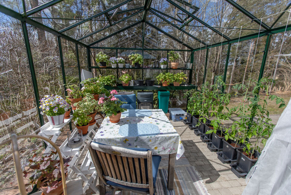 I helgen har vi pysslat i trädgården och i växthuset. Tomaterna har planterats i sina slutliga krukor i växthuset och nu väntar vi bara på blommor och första skörd.